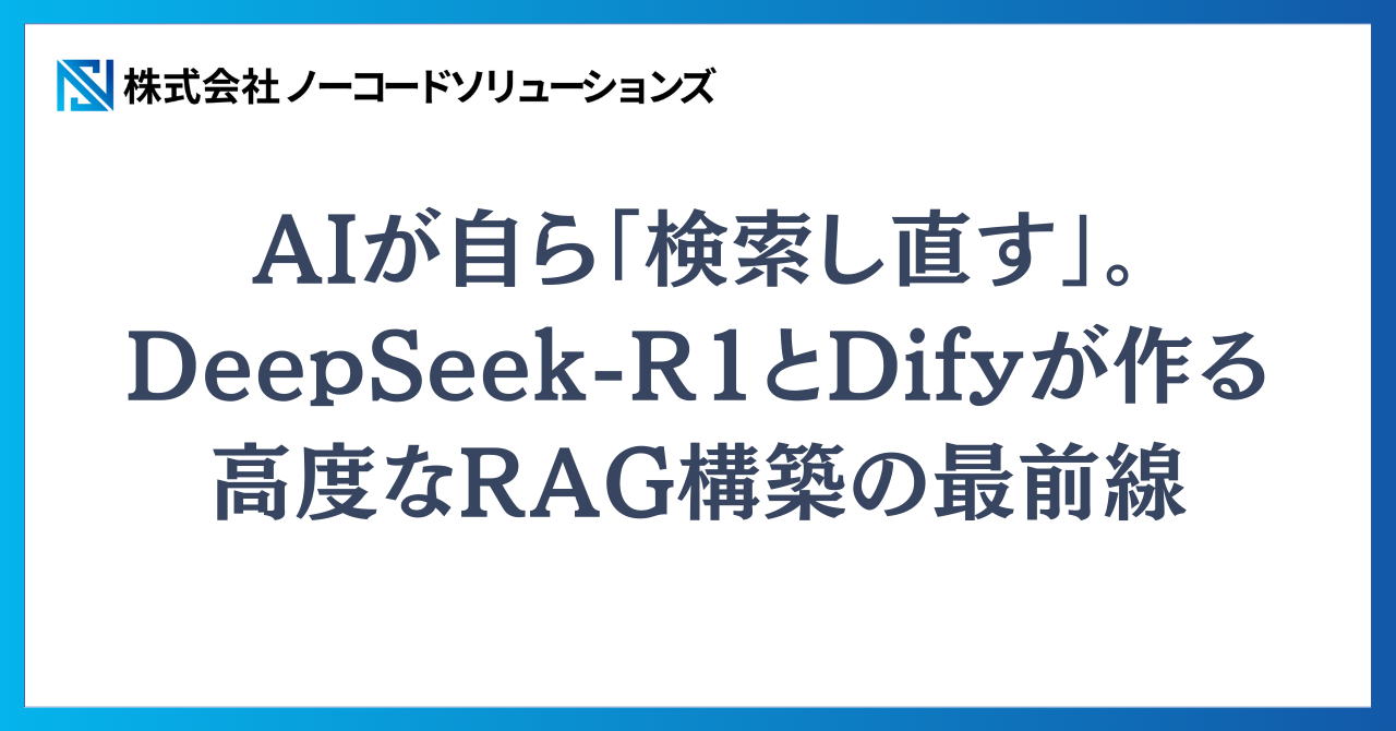 AIが自ら「検索し直す」。DeepSeek-R1とDifyが作る高度なRAG構築の最前線