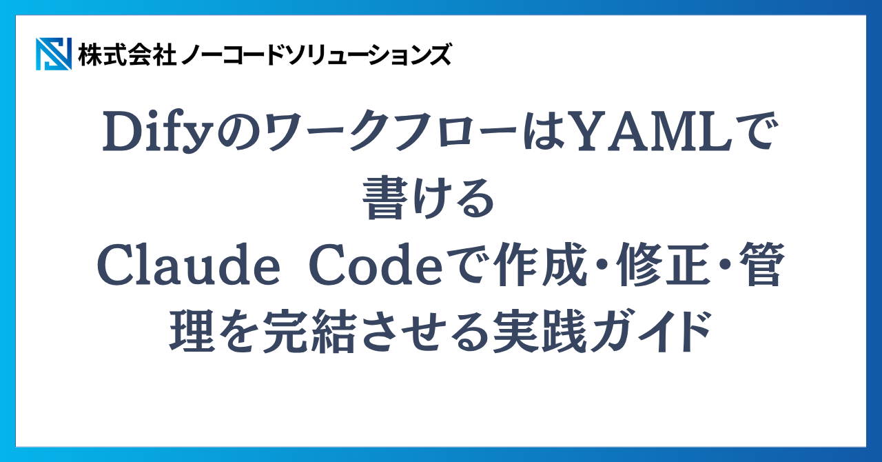 DifyのワークフローはYAML(DSL)で管理できるため、Claude Codeとの相性が抜群です。GUIでの煩雑な操作から解放され、自然言語だけでワークフローの作成・修正・改善が可能になります。